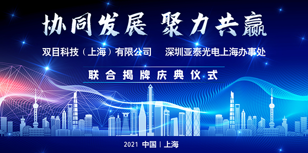 2021年3月27日,由深圳市亞泰光電技術(shù)有限公司主辦的“協(xié)同發(fā)展 聚力共贏”暨雙目科技(上海)有限公司、深圳亞泰光電上海辦事處聯(lián)合揭牌慶典儀式在上海市松江區(qū)新雅科創(chuàng)園順利舉行。